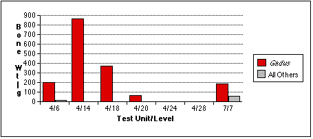 After identifying remains from excavation samples and computing MNI from those remains, I identified elements from the bulk samples associated with each analyzed unit. Since the volumes of excavated levels and bulk samples varied, and since the bulk samples represented only a tiny fraction of the total soil in any one excavation unit, I could not with any confidence derive meaningful quantitative data from bulk samples. However, the identification of the bones of very small animals in some bulk samples suggested that Nash Harbor residents exploited animals whose remains were not recovered in the 1/4" screen samples.