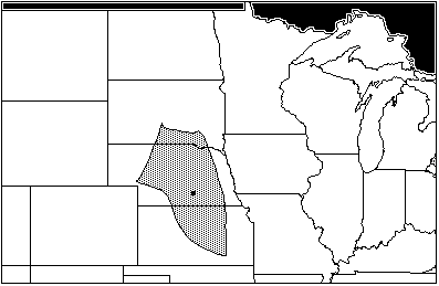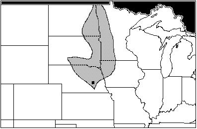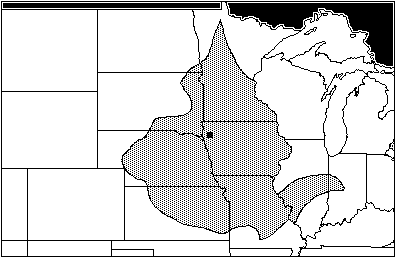 The oldest site, Rainbow, in northwestern Iowa, also has the longest record of habitation. It contains four cultural horizons dating from AD 250 to AD 675. (Falk & Semken 1990: 145–164.) The Rainbow assemblage from all four horizons included: Sylvylagus floridanus, the eastern cottontail; Citellus tridecemlineatus and Citellus franklinii, the thirteen-lined ground squirrel and Franklin's ground squirrel; Sciurius niger, the fox squirrel; Geomys bursarius, the plains pocket gopher; Synaptomys cooperi, the southern bog lemming; and Microtus ochrogaster, the prairie vole. The area of maximum sympatry for all four horizons is fairly large, stretching north into northwestern Minnesota, west to the Nebraska panhandle, south to the Ozarks of Missouri, and along the Mississippi. G. bursarius defines the eastern border of the area of maximum sympatry—generally along the Mississippi River, with a projection into central Illinois and Indiana (Figure 1). All seven of the species are found in this area. The assemblage is dominated by eastern fauna, many of which live in wooded or marshy settings (i.e. Sciurius niger, Sylvilagus floridanus, and Synaptomys cooperi.) The others, however, show a favoritism towards open or meadow settings.
