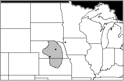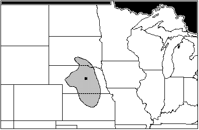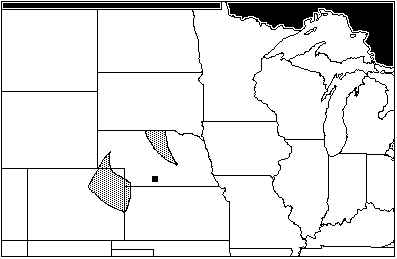 The Hulme Site, in Hall County, Nebraska, dates to ad 1175–1225. (Bozell 1991:229–253). Its assemblage contains: Blarina carolinensis, the southern short-tailed shrew; Sylvilagus floridanus; Citellus franklinii; C. tridecemlineatus; Cynomys ludovicianus; Geomys bursarius; and Microtus ochrogaster. The site lies in nearly the center of the area of maximum sympatry, which runs from southern South Dakota through Nebraska and into Kansas (Figure 6). This assemblage represents a variety of habitats, with Plains animals (Citellus tridecemlineatus, Cynomys ludovicianus); mixed-habitat animals (Citellus franklinii); and woodland animals (Blarina carolinensis, Sylvilagus floridanus), although these last three are unparticular animals.