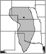 The collected sympatry data for all species at Central Plains Tradition sites yields no area of total maximum sympatry, owing to O. palustris. Excluding O. palustris from the data set reveals an area of sympatry covering central Nebraska, extending south into Kansas (Figure 9). This is very similar to the area of maximum sympatry for Woodlands sites, which has implications for the severity of climatic change between the Neo-Atlantic and Pacific episodes ("Conclusions," below).