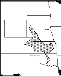 The next oldest site of the Woodland affiliation is the Wallace site, in Gosper County, Nebraska, near the Kansas border, and dates from AD 425 to 650. (Bozell & Koch n.d.) The Wallace assemblage includes: Scalopus aquaticus, the eastern mole; Cynomys ludovicianus, the blacktail prairie dog; Sciurius niger; Perognathus hispidus, the hispid pocket mouse; Onychomys leucogaster, the northern grasshopper mouse; Microtus pennsylvanicus, the meadow vole; and Geomys bursarius. There are two small areas of maximum sympatry for the Wallace site, one a sliver of north-central Nebraska running south from the Niobrara river, the other a small wedge in extreme northeastern Colorado (Figure 2). This unusual sympatry is caused by the distribution of Microtus pennsylvanicus, a vole with an affinity for open habitats near water. Today, M. pennsylvanicus is absent from much of Nebraska, including Gosper county. The secondary area of sympatry without M. pennsylvanicus runs along the Niobrara river in the north, south through Nebraska, Kansas and Oklahoma into central Texas (Figure 3). Sciurius niger is the only species of the Wallace assemblage with affinities for woodland habitats; the rest show a definite preference for open, sparsely-vegetated habitat.