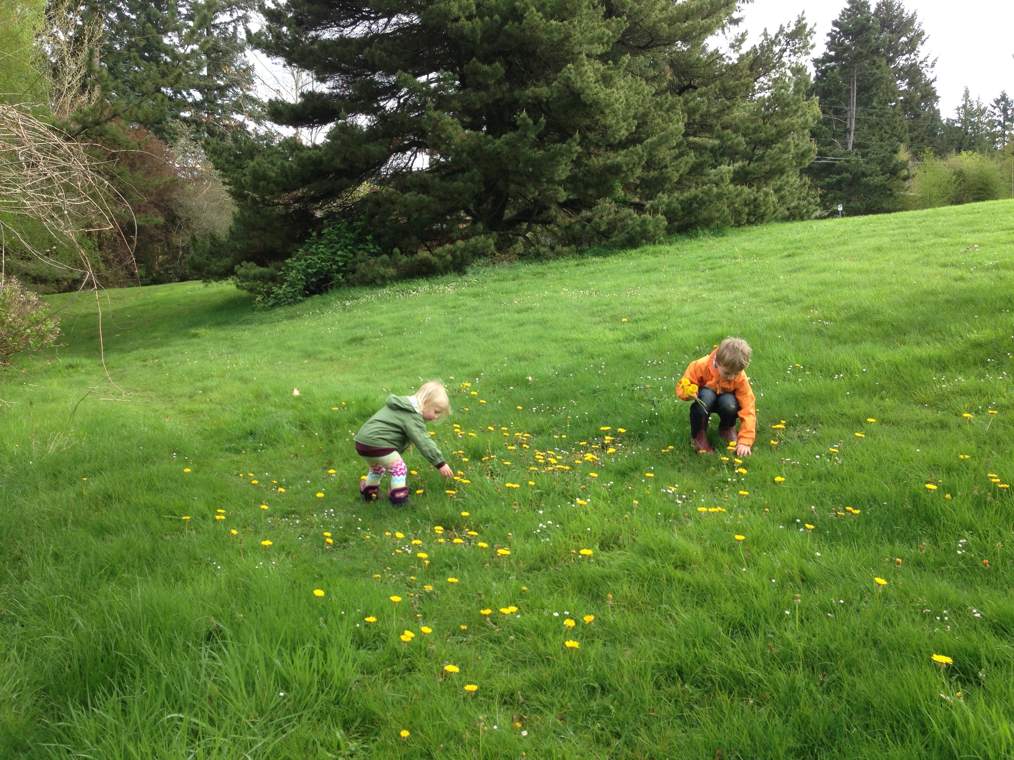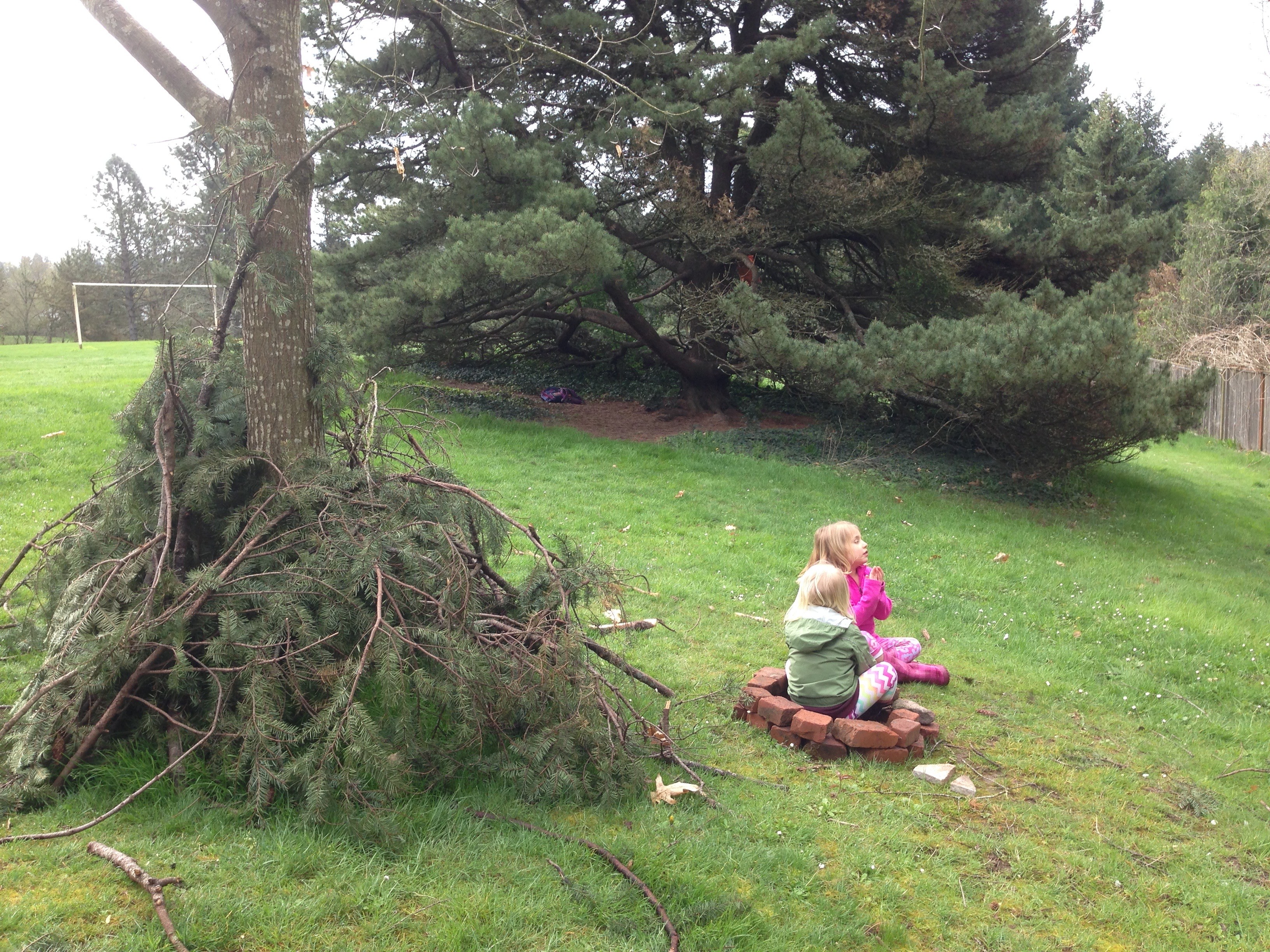 The best park in Portland is Albert Kelly Park. It's boggy and muddy, the playground equipment is older than me (including a merry go round so fast it can throw the kids sideways), one of the neighbors has hung a janky board swing from a tree, it has a huge stand of century Doug Firs, and we always find piles of bricks and rocks and sticks that lend themselves to making nests or forts or ninja hideouts.
