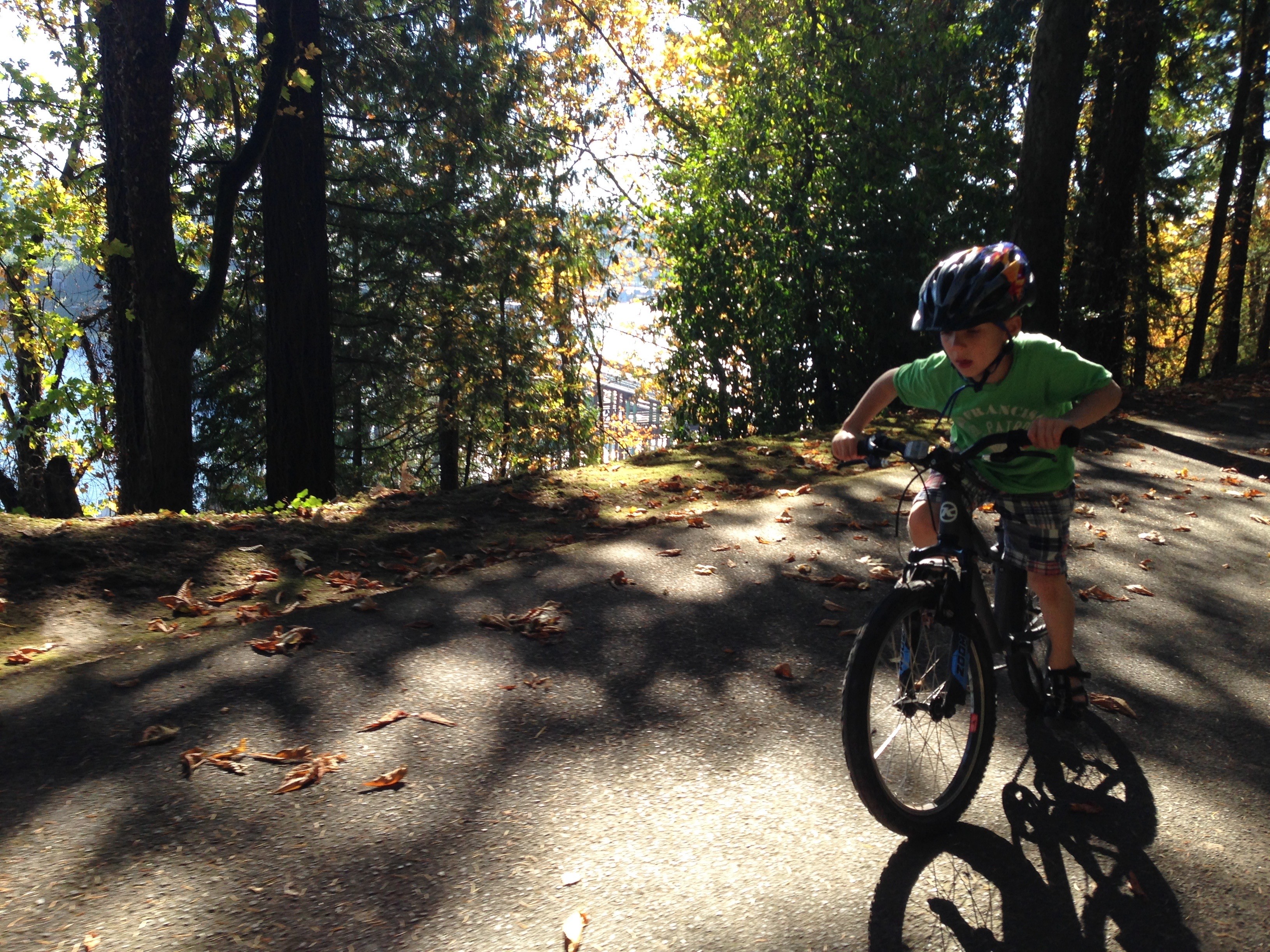 Orion, Bismarck and I had a bachelor weekend here in PDX with no car. Orion wanted to ride his bike not the tagalong everywhere including across the river twice which if you’ve ever been to our house you can appreciate how much climbing that entails. He insisted I share on the Internet that he had his longest bike ride ever, about 13mi each way — with a soccer game/slash/birthday party in the middle. We also took a lovely hike in the woods literally out our back door; Orion brought his notebook so he could draw pictures of birds. Saturday night in proper bachelor fashion we ordered pizza and watched a movie (you’ll never guess which one…)