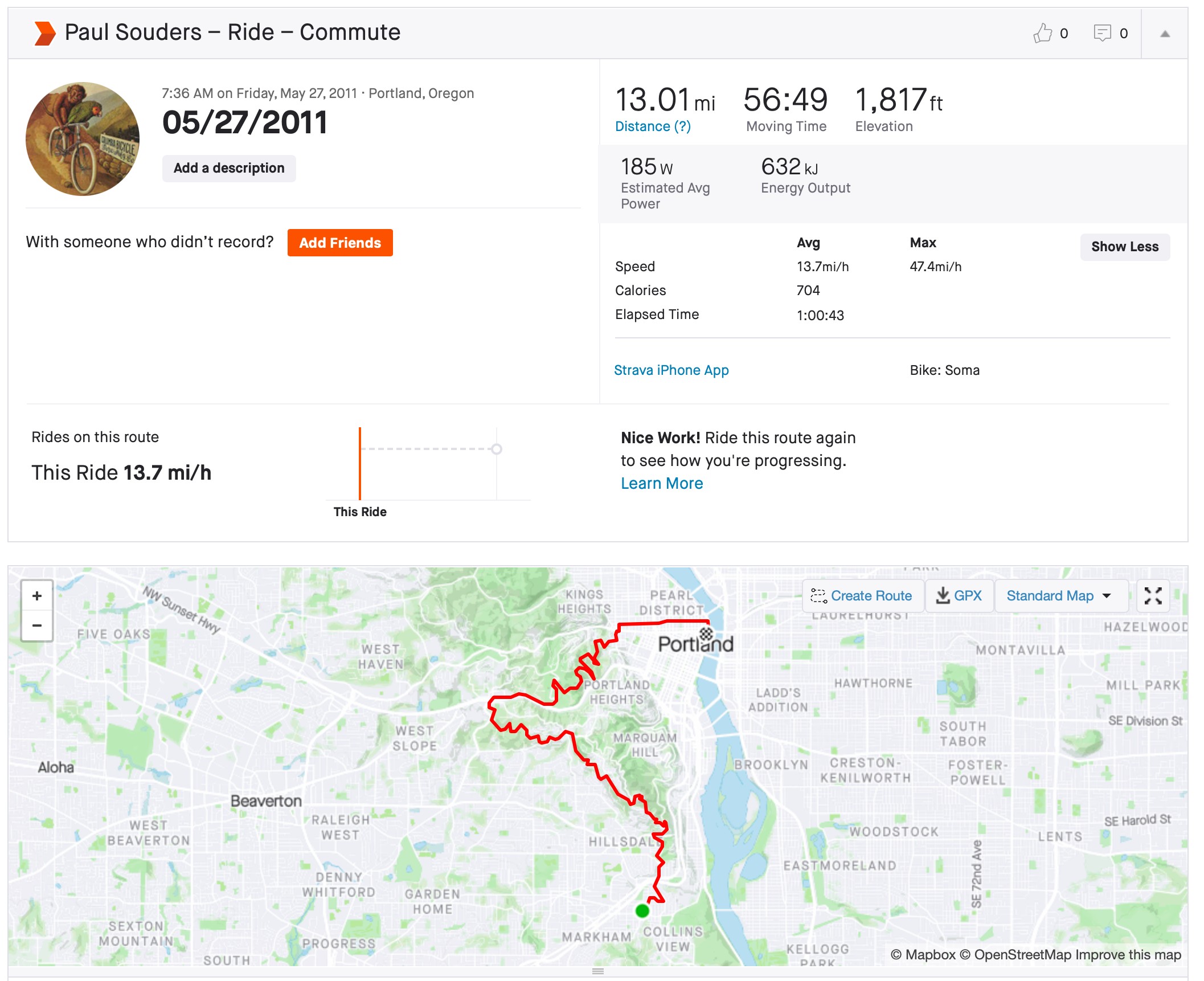I can’t believe Strava didn’t remember our tenth Stravaversary. My first Strava ride was, unsurprisingly, a commute over Council Crest on May 27, 2011.