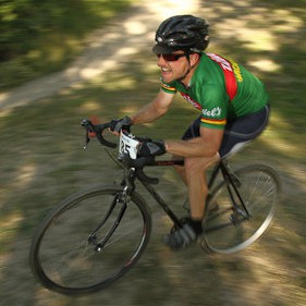 This week I rode my ’cross rig on the course. It made for a subtly different race, not any more physical effort certainly but more mental effort. I couldn’t rely on MTB technology (ultra low gearing, suspension, disc brakes) to power across bad sections. I’m already a big fan of skinny tires on bad terrain, so the jolting (due to lack of suspension) didn’t hurt any worse than many of my weekend rides. But without the ultra low gearing, I had to grind up the berms and climbs — which put me way way waaaay into the red zone on Lap 2 or thereabouts. Like: gut-splitting core pain. I also hadn’t realized to what extent I relied on the old motocross trick of powered braking through turns. I lost the most ground in the Garden of Switchbacks through the trees in the infield.
