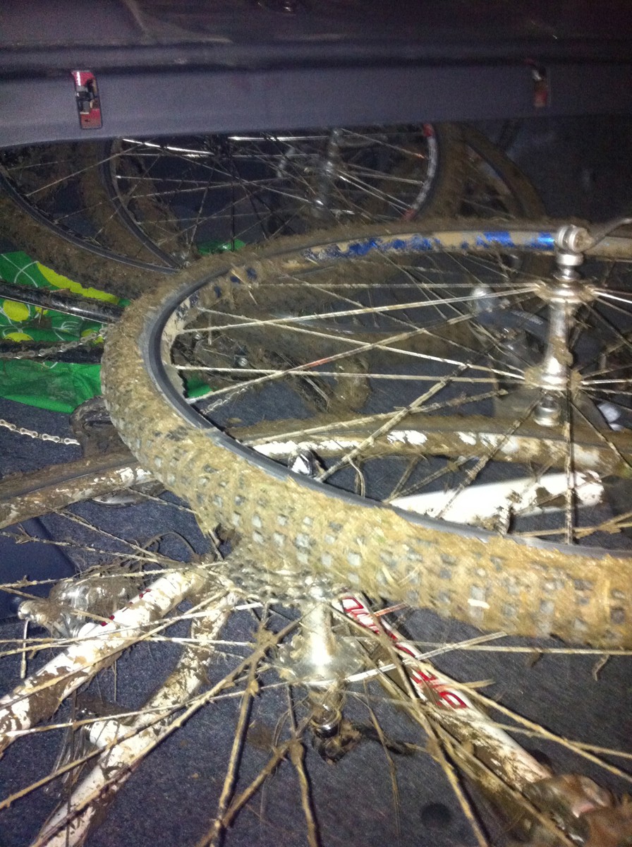 The week’s rain had squished the dairy dirt into a wonderfully slippery, ropy, tenacious goo; the race organizers had stabilized the goo in many places with straw, forming a kind of adobe. For much of the race it felt like I was being fwapped with whips of mud, and it took the better part of an hour to clean off the bike. (My body, amazingly, was largely mud-free.) Mud like this says “never stop”, because any loss of momentum means washing out, bogging down, or slipping into a rut from which there is no escape.