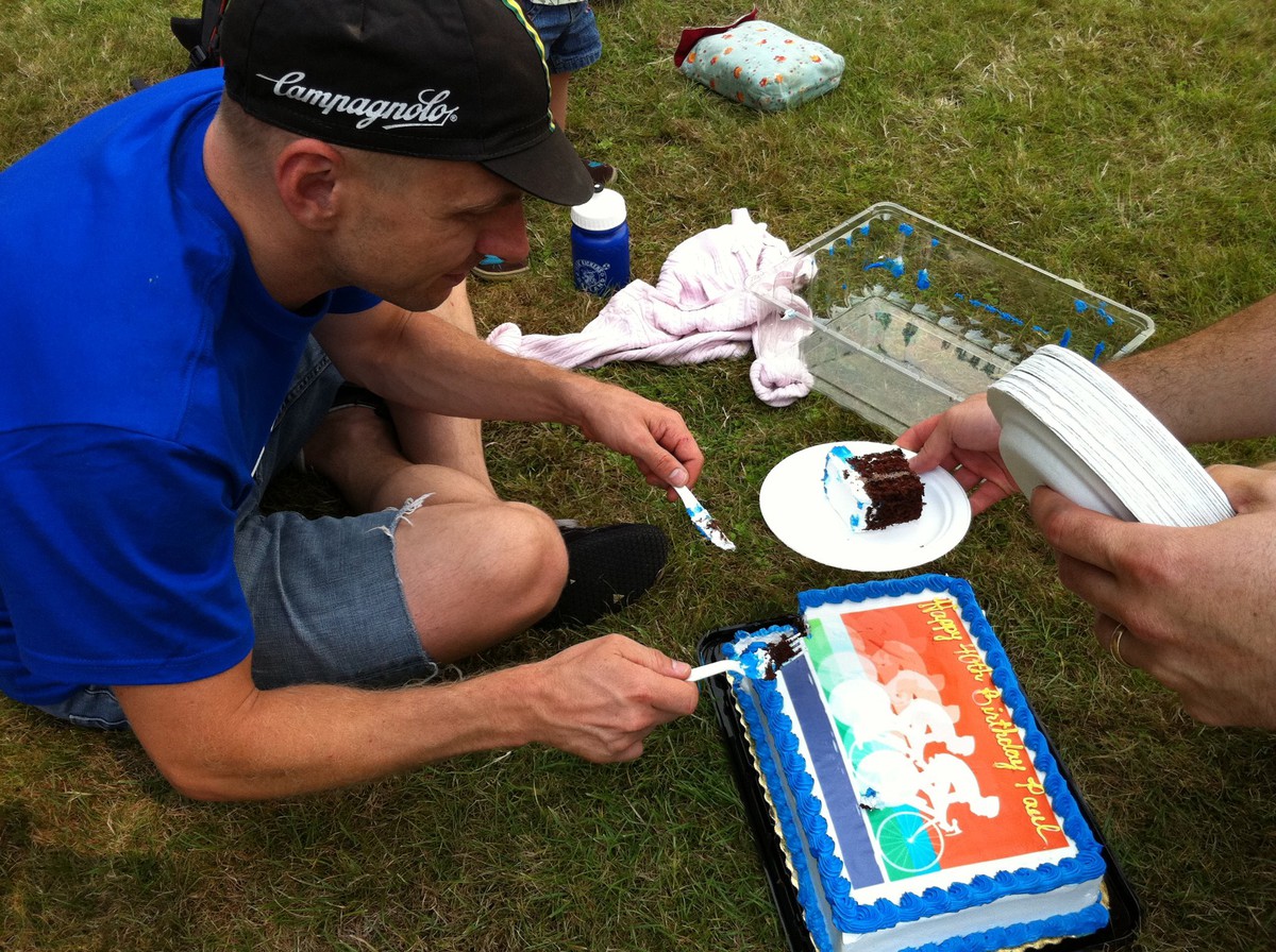 And today at the season opener Thom and Amanda (and I’m presuming the other Muddy Iguanas) bought me a truly cool cake, of the pure trans-fat Fred Meyer variety. Loved. It.