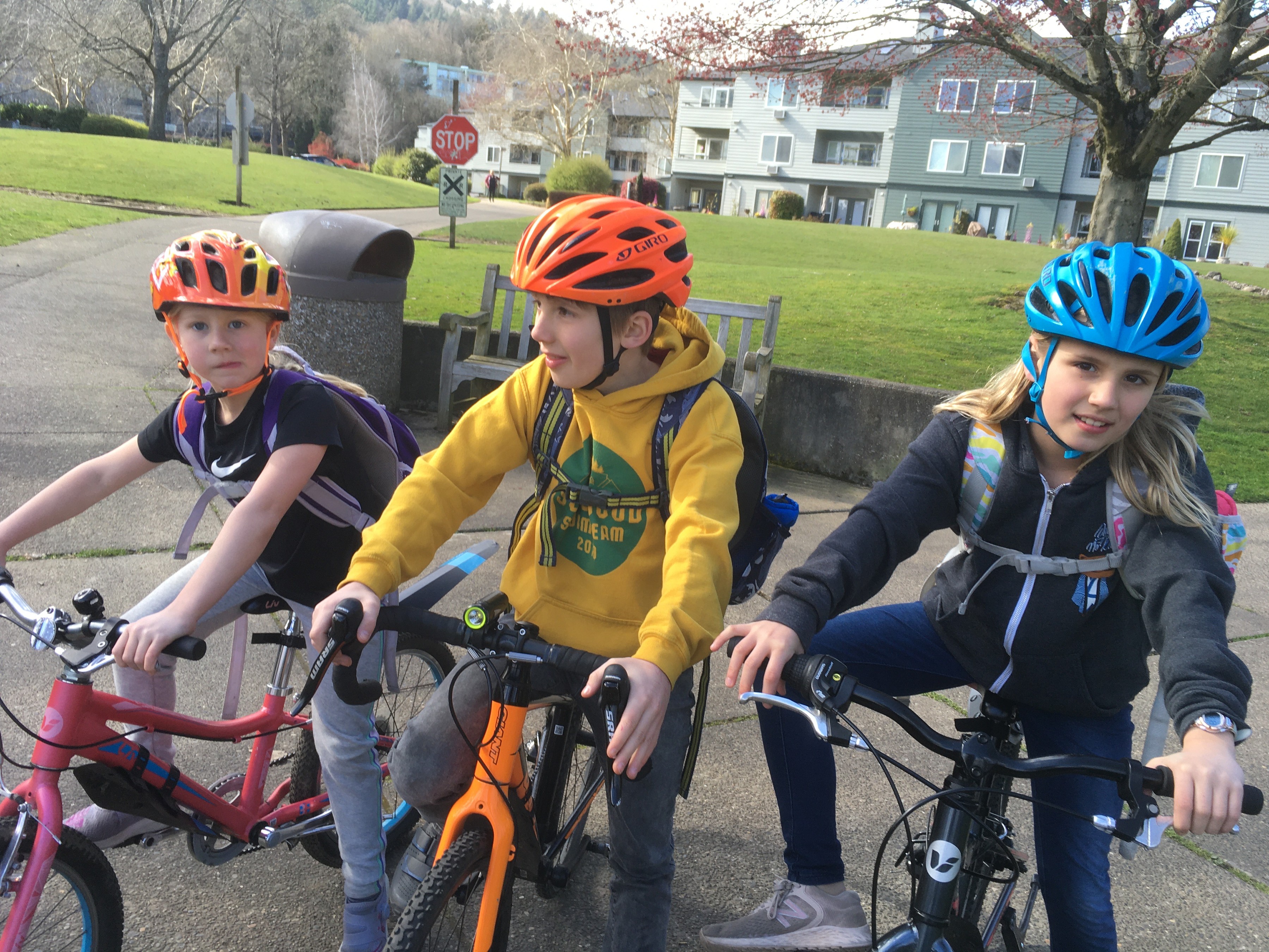 Riding bikes to school with my kids